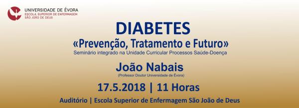 A diabetes constitui hoje um dos maiores desafios da saúde pública, em Portugal mais de um milhão de pessoas vive com diabetes e mais de 2 milhões têm um risco elevado de a vir a desenvolver. A abordagem do tema contará com a intervenção do orador Professor Doutor João Nabais | Universidade de Évora | Escola de Ciências e Tecnologia | Membro da Associação Protectora dos Diabéticos de Portugal | Ex Presidente da Federação Internacional da Diabetes, Região Europa.